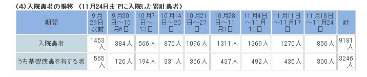 11月4~11月10が1369人で最大・・ピークは去ってるかな日本は・・