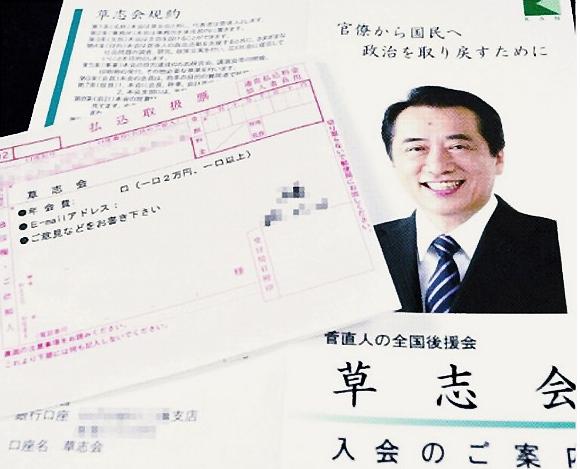 民主党の菅国家戦略相の資金管理団体「草志会」が後援会組織の年会費を寄付として扱い、総務省から所得税控除のための証明書の交付を受けていたことがわかった。