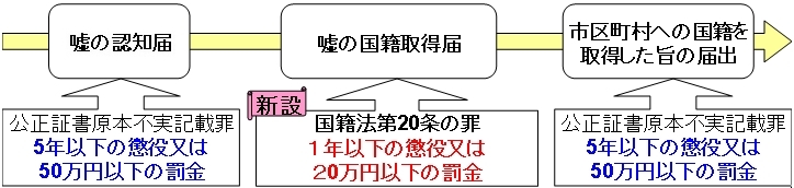もう1つは,国籍取得の届出に際して,虚偽の届出をした者に対する罰則が設けられたことです。